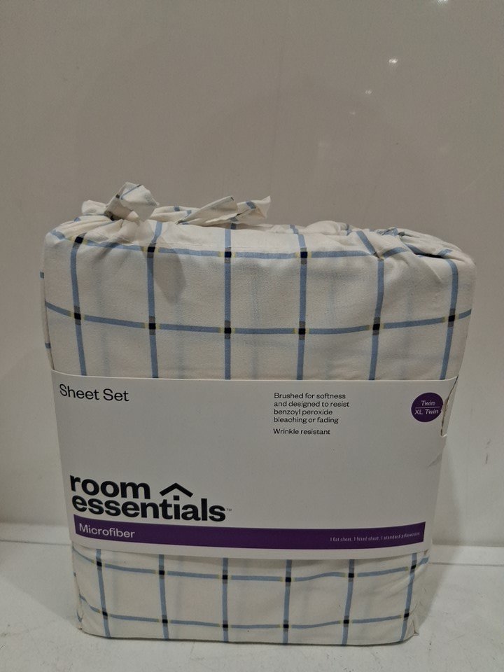 3PC Room Essentials Microfiber Sheet Set - Twin - Blue Grid