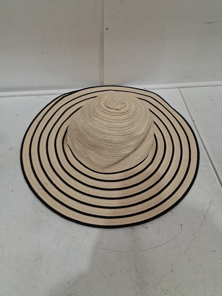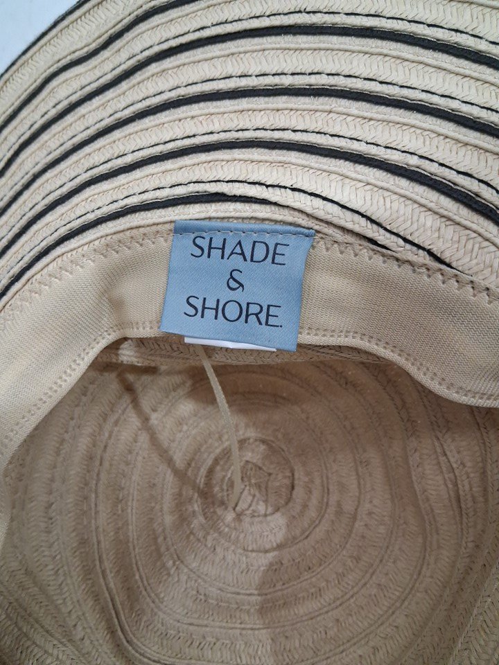 SHADE & SHORE Straw Essential Striped Floppy SUN Hat - one size fits most - beige / black