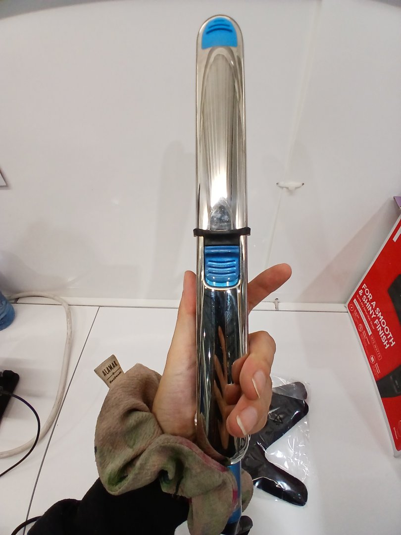 babylisspro nano titanium stainless steel dual ceramic hair straightener - 1 1/2" - silver/blue (model: babss3300tuc).