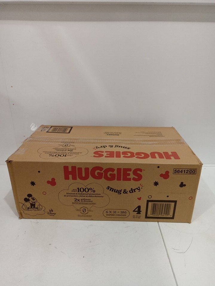 186pk huggies snug and dry diapers - size 4 - 22lb to 37lb - disney mickey mouse