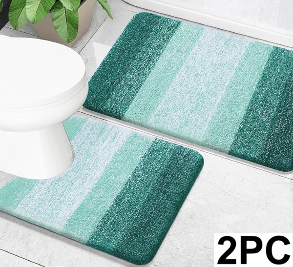 2PC OLANLY Non-Slip Microfiber Absorbent Bath Mat Set - 30"x20"+24"x20" - Blackish Green