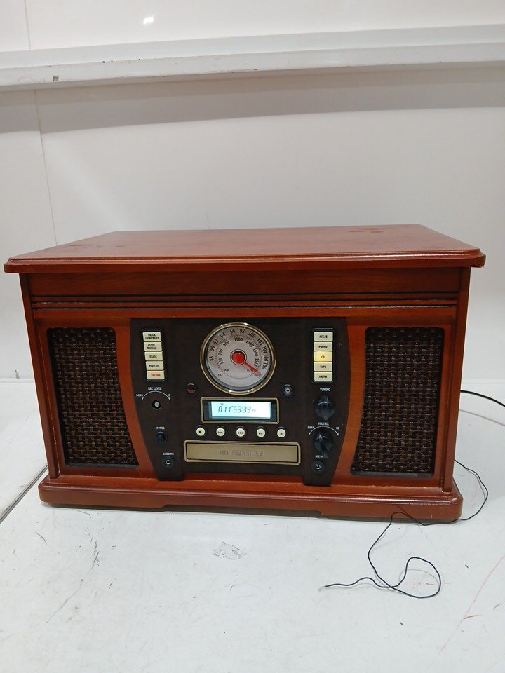 there is some markings on the surface of the item there is a wire on the back that looks as if it could have previously been used tested for power turn table is loose, believed to be the screw just needs to be screwed back in