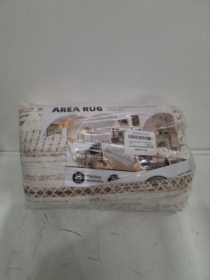 BOHO Machine Washable Non-Slip Indoor Living Room AREA RUG/carpet - 5FT x 7FT - Taupe - (MODEL: DDT-MWCLX-2023CA-5X7-TAUPE-1)