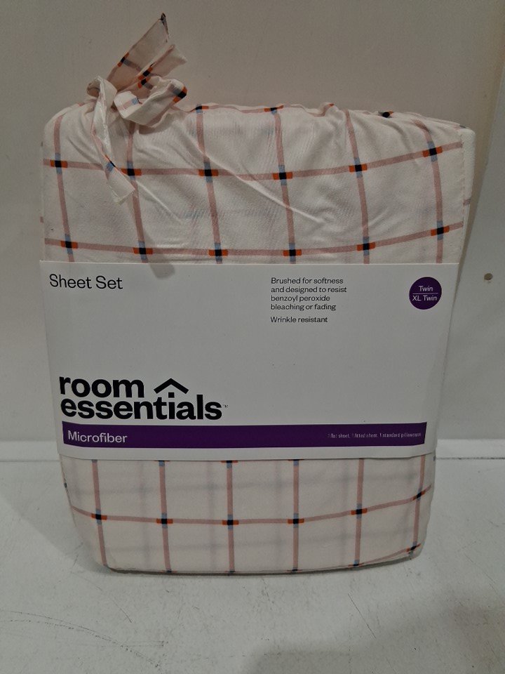 3PC Room Essentials Microfiber Sheet Set - Twin - Pink Grid