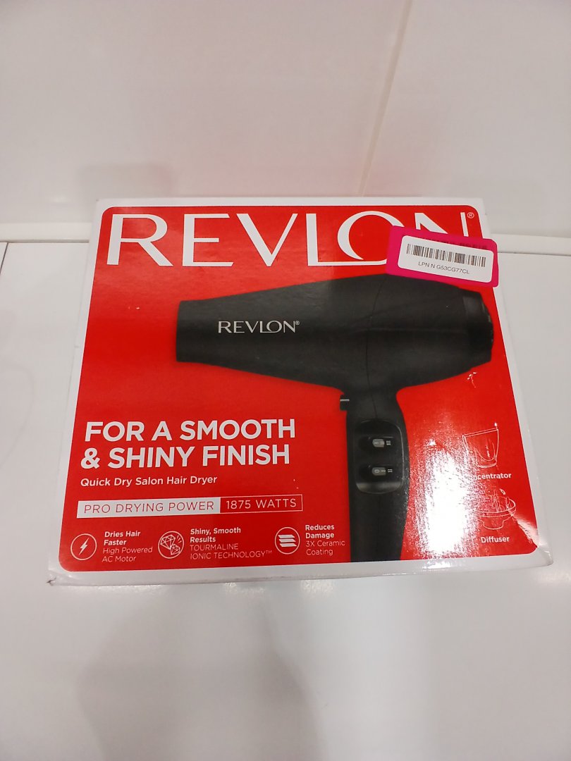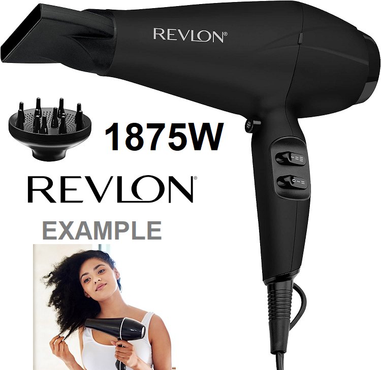 Revlon Pro Drying Power Hair Dryer with Soft-Feel Grip, Concentrator, and Diffuser - 1875W - Black (Model: RVDR5281F)
