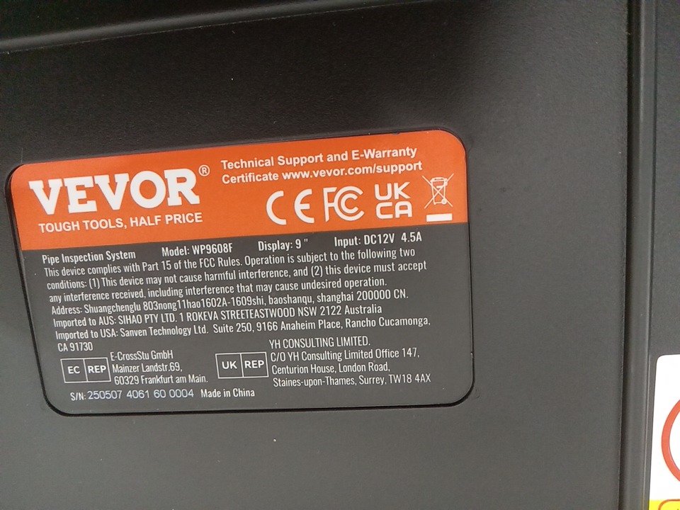 VEVOR Self-Leveling Drain Inspection Camera with LIGHTS AND 1080P HD Screen - 9" - 98FT - 12V 4.5A - BLACK/YELLOW (MODEL: WP9608F)