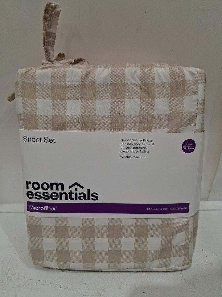 3PC Room Essentials Microfiber Sheet Set - Twin - Khaki Gingham