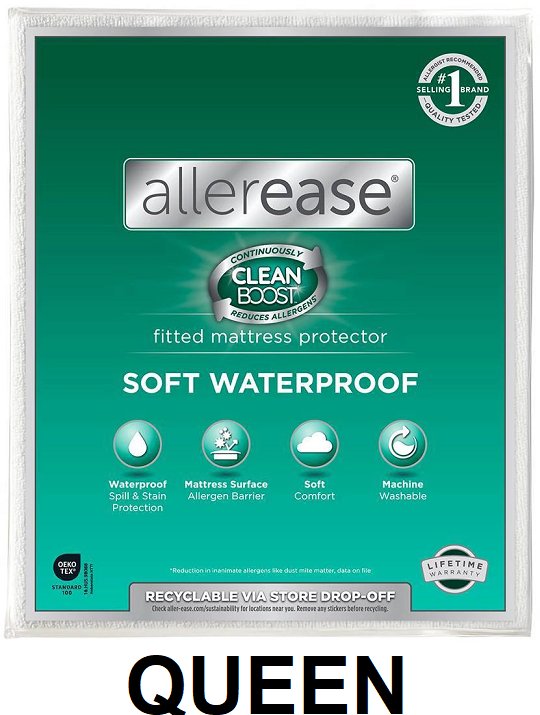 ALLEREASE Clean Boost Waterproof soft Fitted Mattress Protector - queen - white