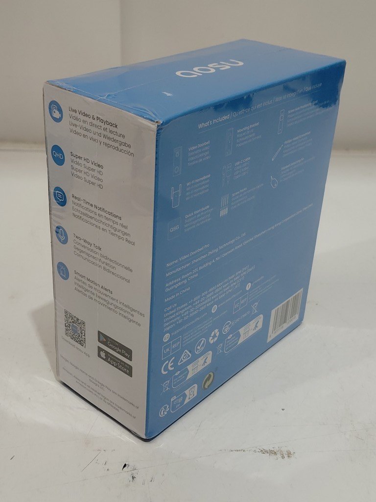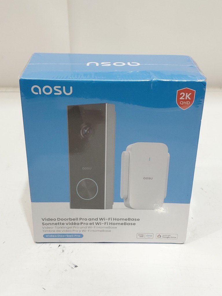Aosu video doorbell pro outdoor battery-powered camera & wifi homebase - 166 degree wide viewing angle, 2k resolution, 2.4GHz - Works with Alexa & Google - space grey (model: V8P1AX11)