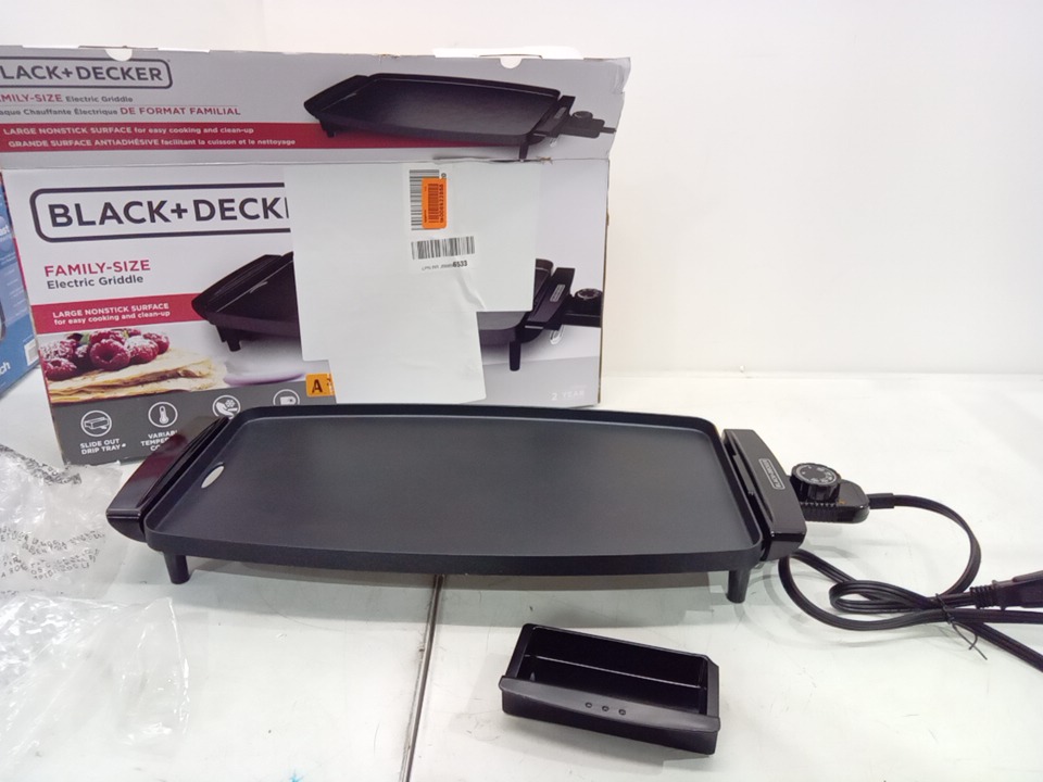 BLACK AND DECKER FAMILY SIZED ELECTRIC GRIDDLE, 20"X11", BLACK (MODEL: GD1810BC)