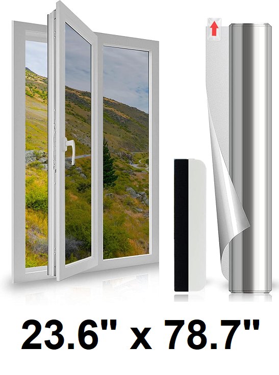 HONLONE one way mirror window film with applicator tool - 23.6" x 78.7" - Silver/clear