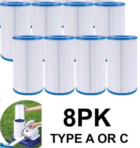 8PK Type A or C Pool Filter Compatible with Intex 29000E / 59900E - WHITE