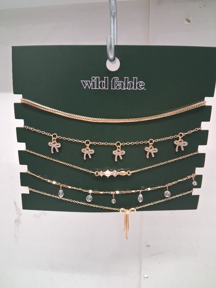 5PC WILD FABLE choker necklaces set - bows/diamonds - gold - ages 15+