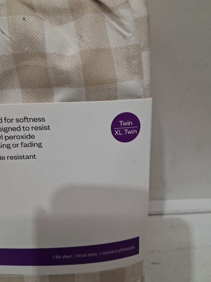 3pc room essentials Microfiber Sheet Set - TWIN / TWIN XL - Khaki Gingham