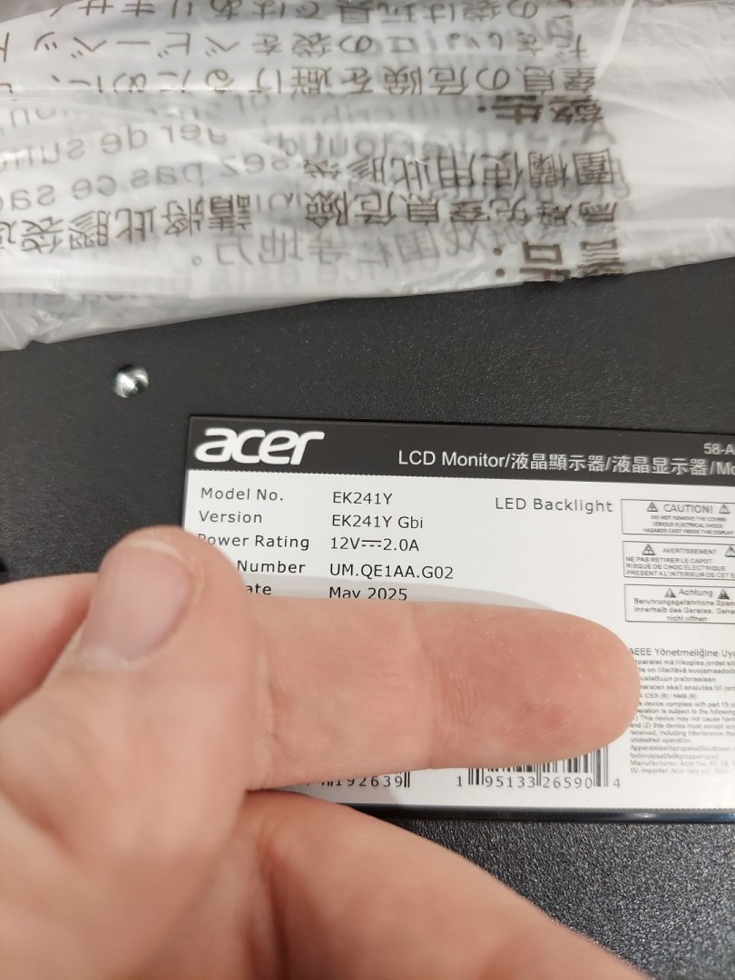 acer 24" ips fhd full hd frameless gaming monitor - 1920x1080 - black - (model: ek241y)