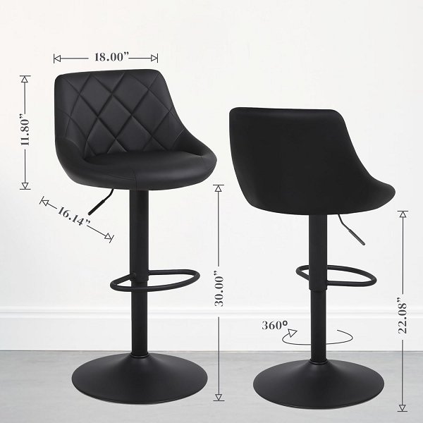 2pk Lennox furniture upholstered Barstools - 14" x 17.7" x 34.2-42.1"- 300LBS MAX - black (model: wh-3002)