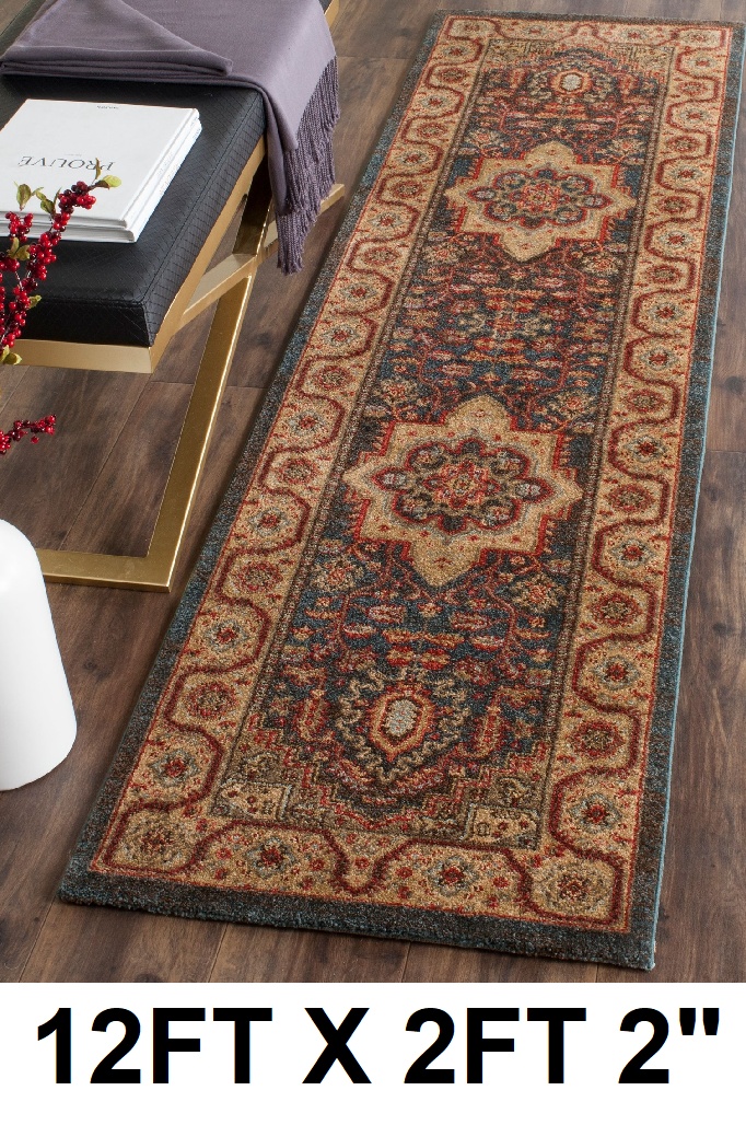 Traditional Mahal Power Loom Area Rug - 12FT X 2FT 2" - Navy & Natural