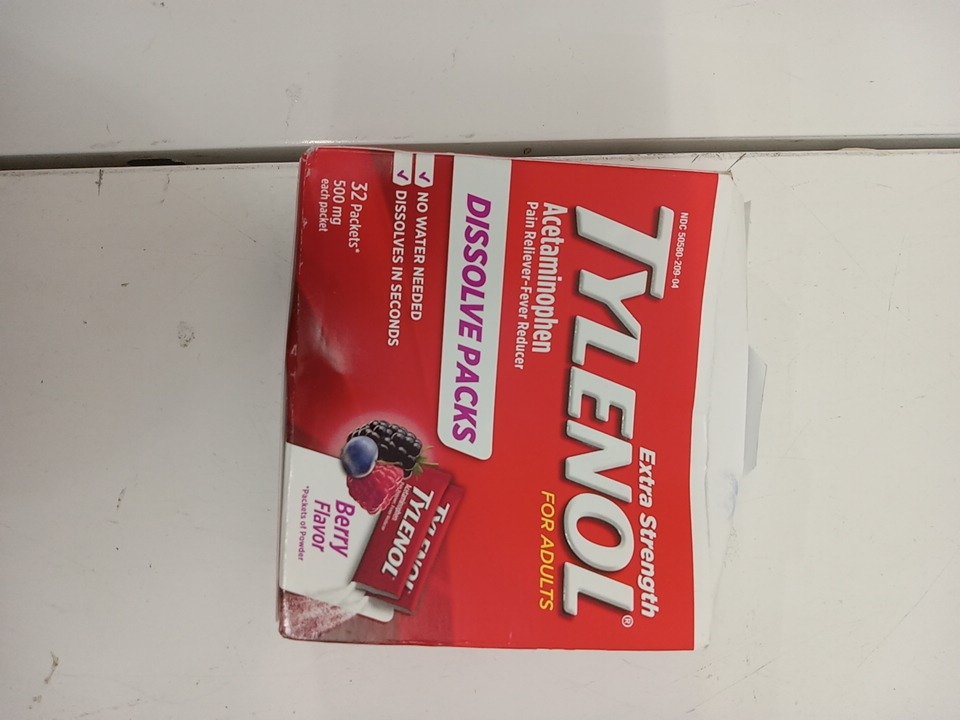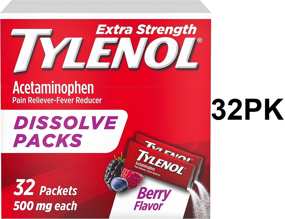 32PK Tylenol Extra Strength Dissolve Packs- 500 mg Acetaminophen Pain Reliever & Fever Reducer- berry flavour