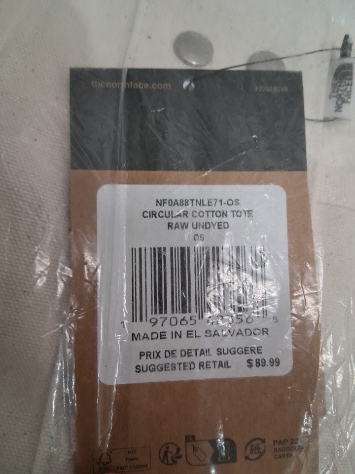 The north face circular cotton tote bag - fits 15" laptops - Raw Undyed - (Style: nf0a88tnle71-os)