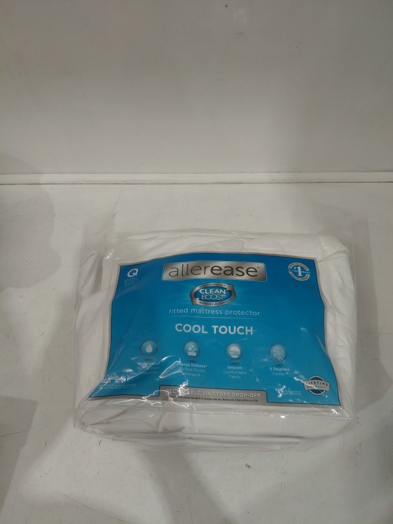 ALLEREASE Perfect Protection Cool Touch Waterproof Machine Washable Fitted Mattress Protector- QUEEN- WHITE