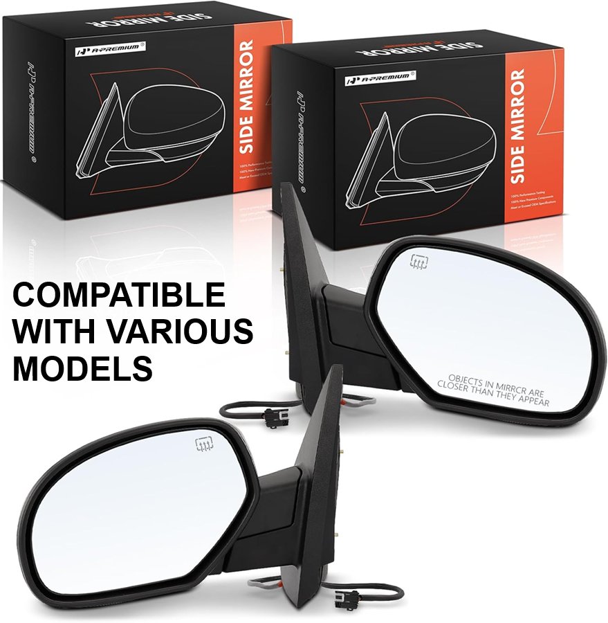 2PC a-PREMIUM DRIVER SIDE AND PASSENGER SIDE REAR VIEW MIRROR - COMPATIBLE WITH VARIOUS MODELS - BLACK