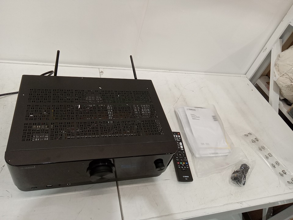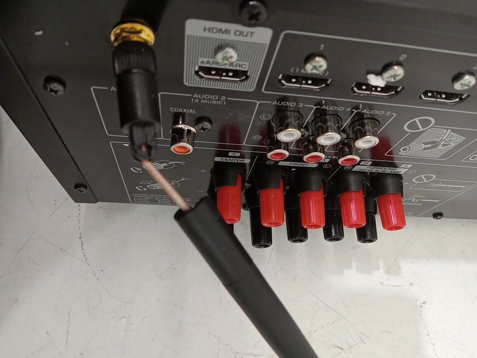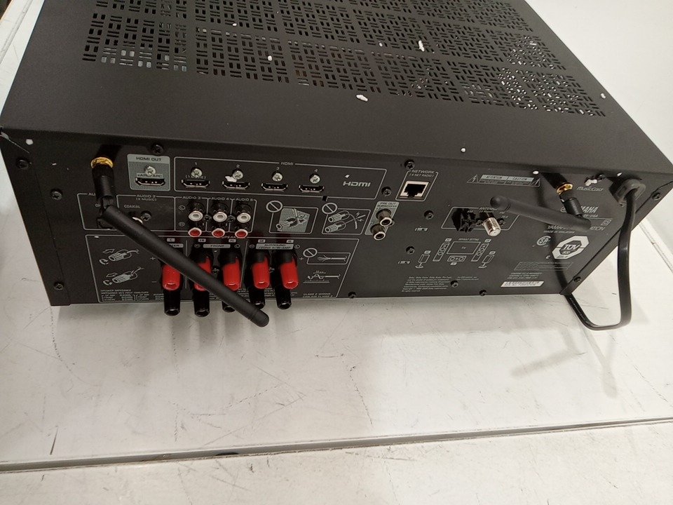 the unit has been tested for power. one of the radio antennas is a bit loose, we were unable to test if this effects the connection as we do not have speakers for this receiver at our facility. see photos below.