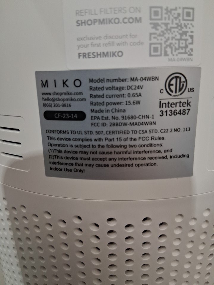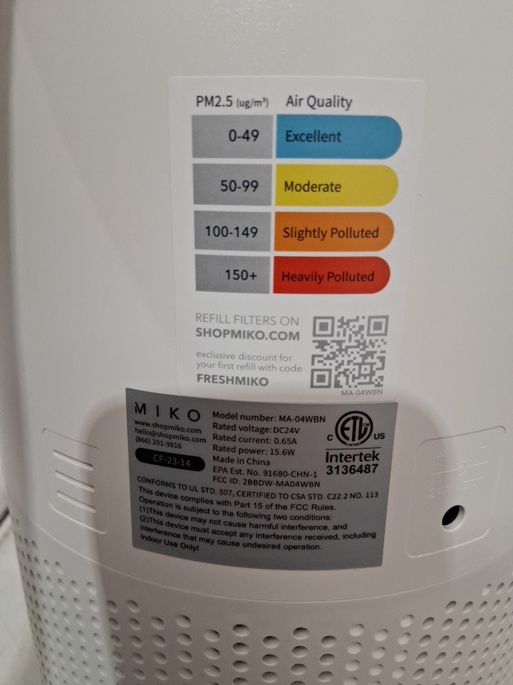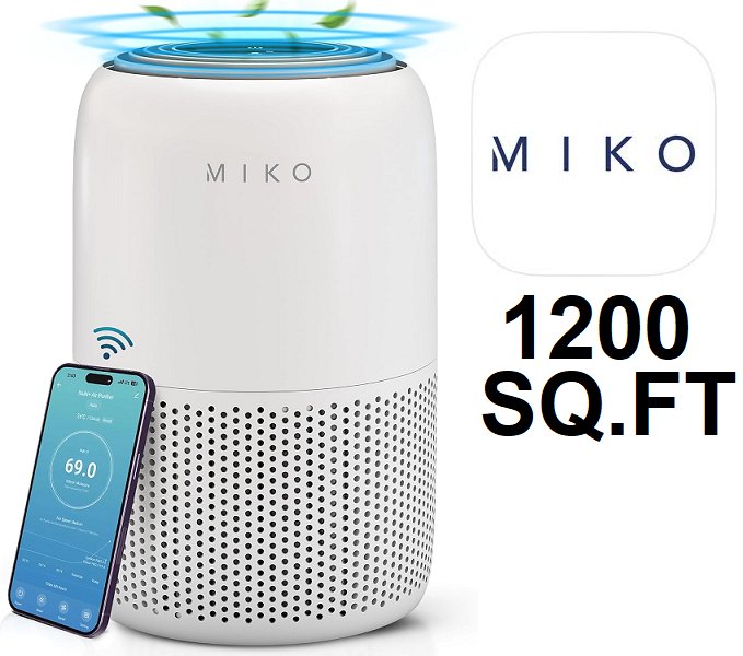 MIKO Smart App Controlled Air Purifier with HEPA Filter and Sleep Mode - Covers Up to 1200 sq.ft - white (model: ma-04wbn)