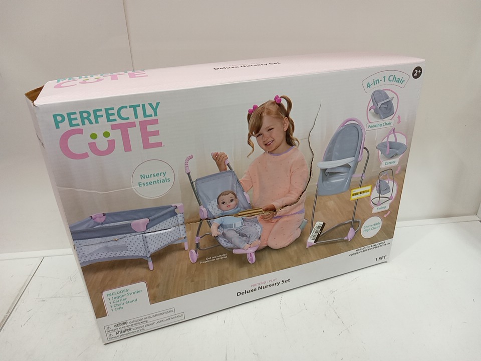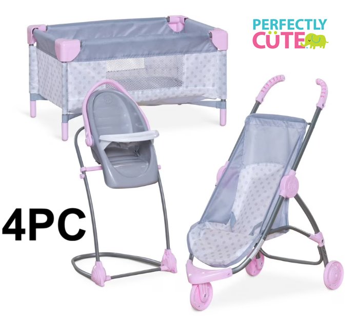 4PC Perfectly Cute Deluxe Nursery Baby Doll Playset - PINK/GREY