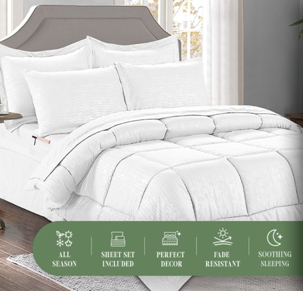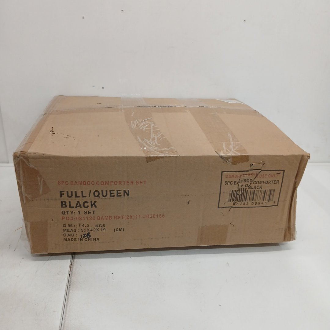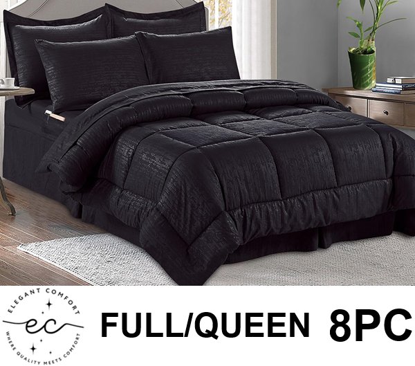 8PC Elegant Comfort® Bed-in-a-Bag Bamboo Pattern Comforter Set with Double Sided Storage Pockets - Full/Queen - Black