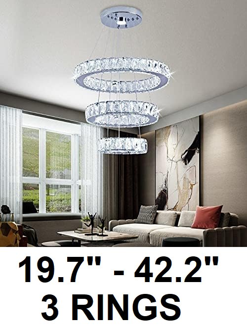 VETRULUS MODERN ADJUSTABLE 3 RING LED CEILING chandelier - 19.7" - 42.2" - cool white