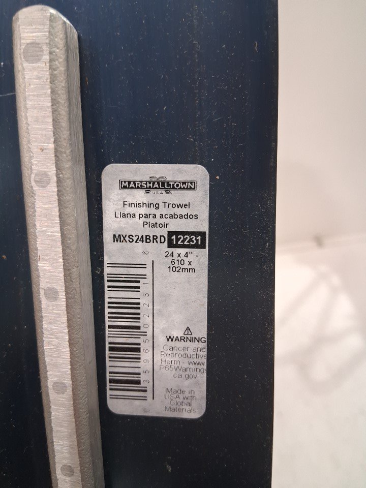 MARSHALLTOWN The Premier Line Blue Steel Finishing Trowel Fully Rounded with Curved DuraSoft Handle - 24" x 4" (model: MXS24BRD)