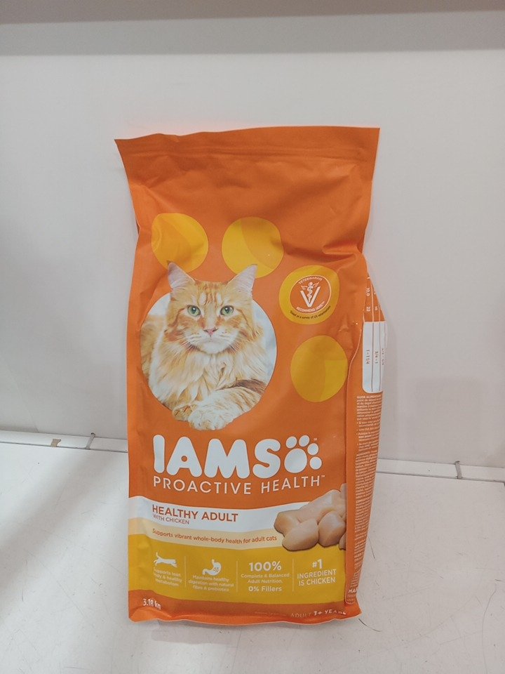 **expiring soon** iams adult cat proactive health cat food - 3.18 kg - chicken