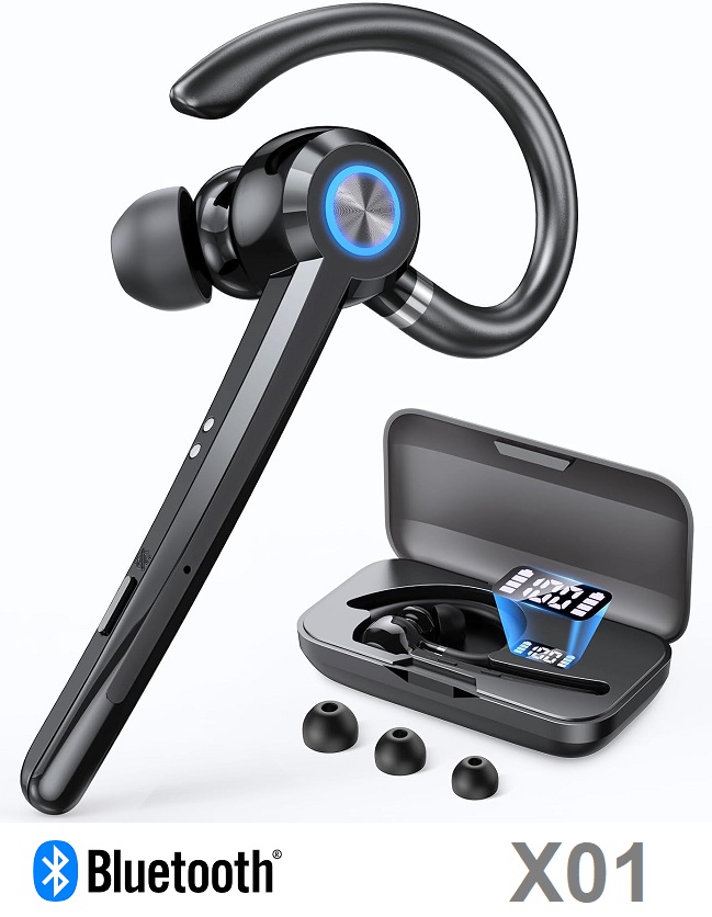Bluetooth Earpiece Headset with LED Display Charging Case - Black (Model: X01)