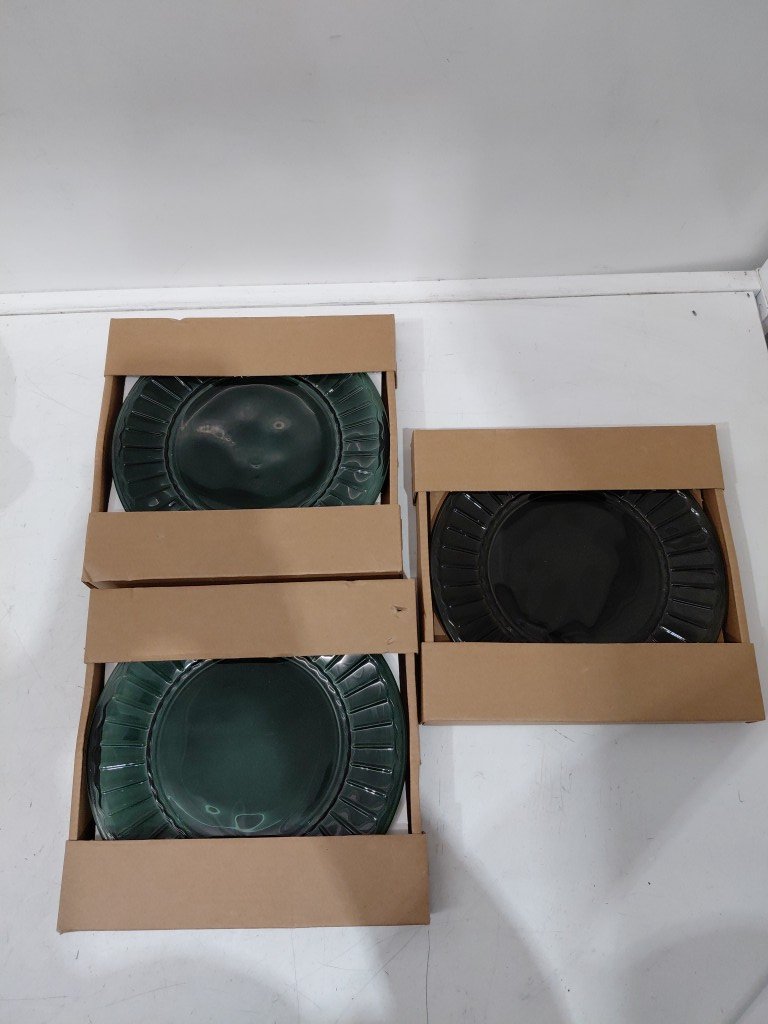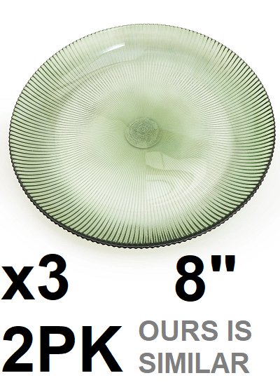 (3) 2pk ridgid edge glass plates - 8" - green