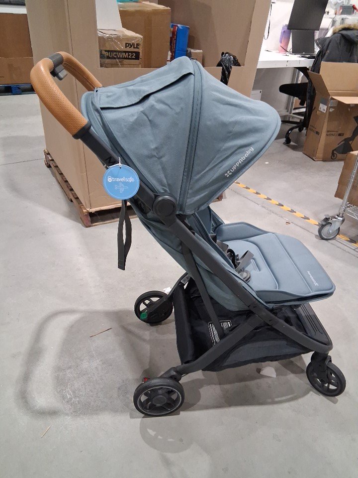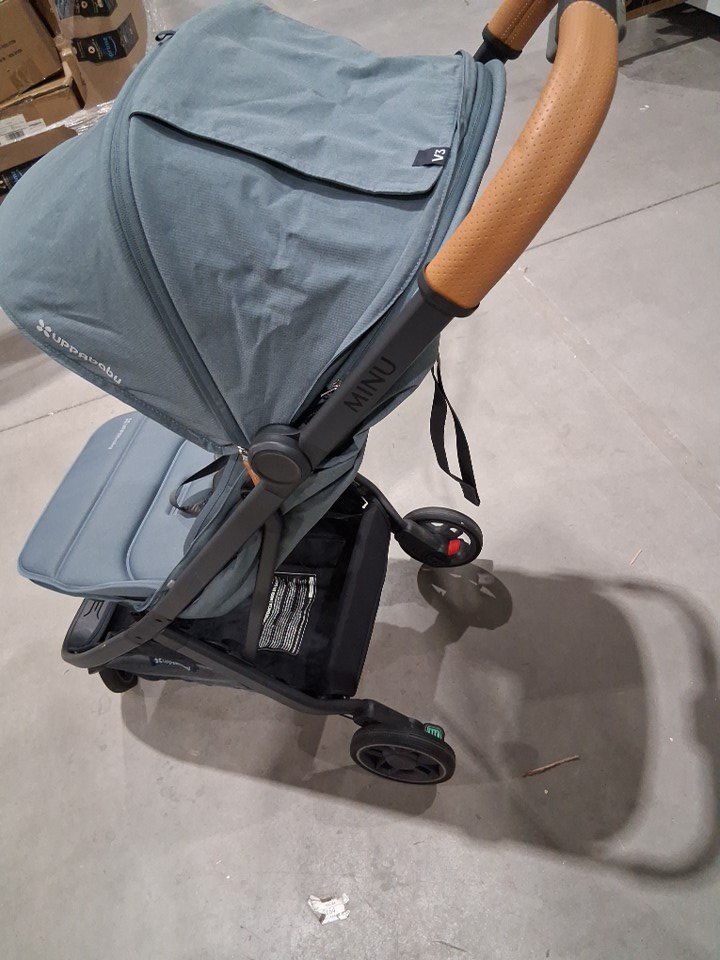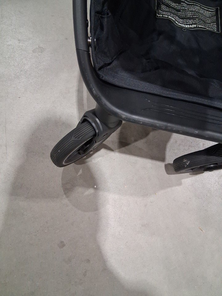 dust on wheels is from warehouse, when rolled to be photographed. this stroller had no previous signs of use.