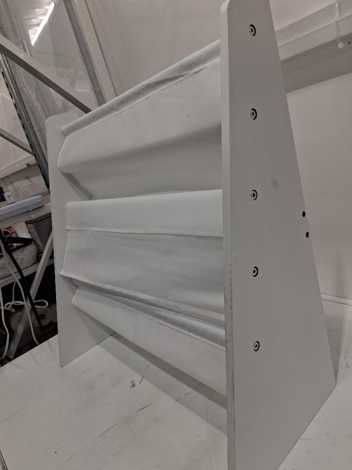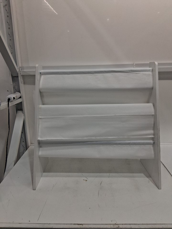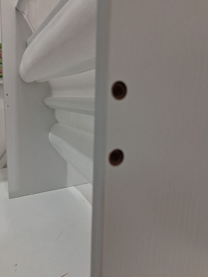 the material for the shelves is on inncorrectly and will need to be put on properly in order to work properly. item also seems to be missing the rear support bar. which could be easily DIY'd and/ safety strapped to the wall to hide this and help support it. please see photos.