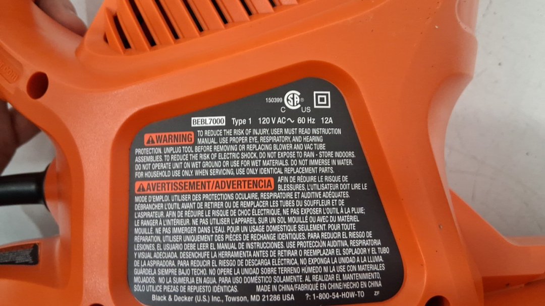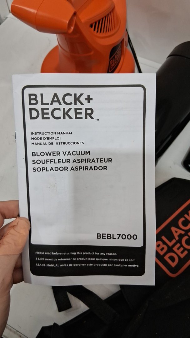 BLACK AND DECKER CORDED BACK PACK LEAF BLOWER, VACUUM & MULCHER, 250MPH, 400CFM - BLACK/ORANGE (MODEL: BEBL7000)