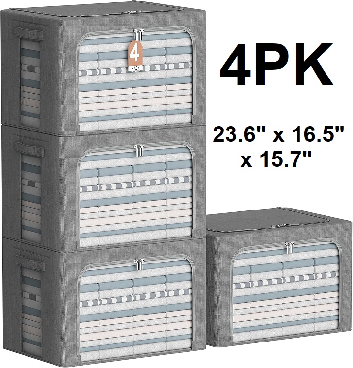 4PK Clothes Storage Bins with Metal Frame - 23.6" X 16.5" X 15.7" - Grey