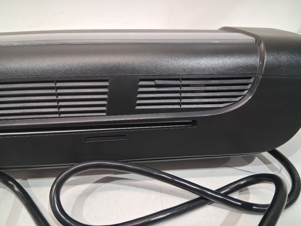 Items casing appears to be lose, with a small crack on back of plastic grate. Item has been tested for power.