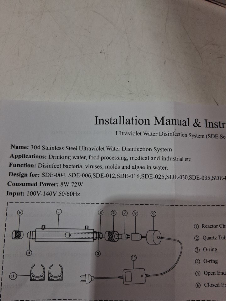 REALGOAL 304 STAINLESS STEEL UV WATER DISINFECTION SYSTEM - 6GPM - 25W - 1/2''MALE - SILVER/WHITE