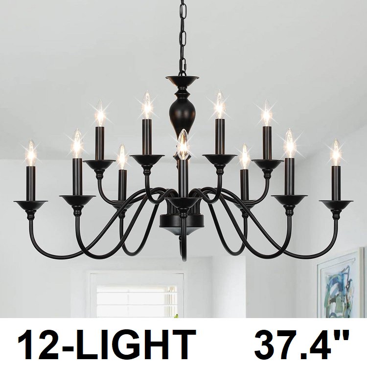 lightdamy adjustable height 12-light Farmhouse Chandelier - 37.4" - 71" chain - e26 bulb base - black (model: Y8850-8+4)