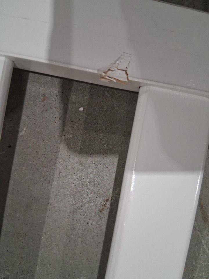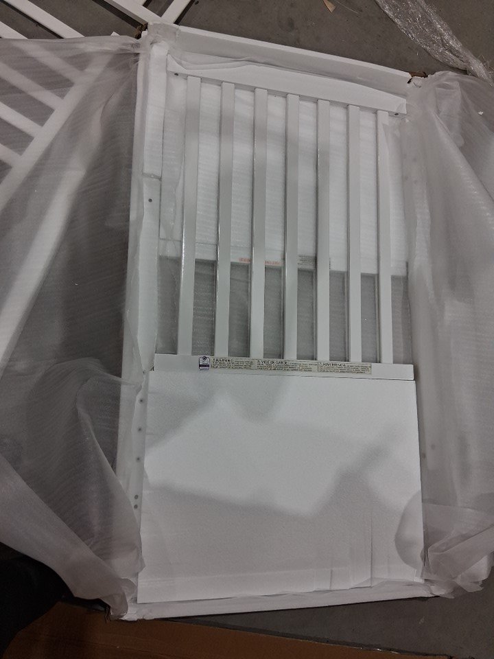 small cosmetic dent on bottom rail. confirmed all pieces are present