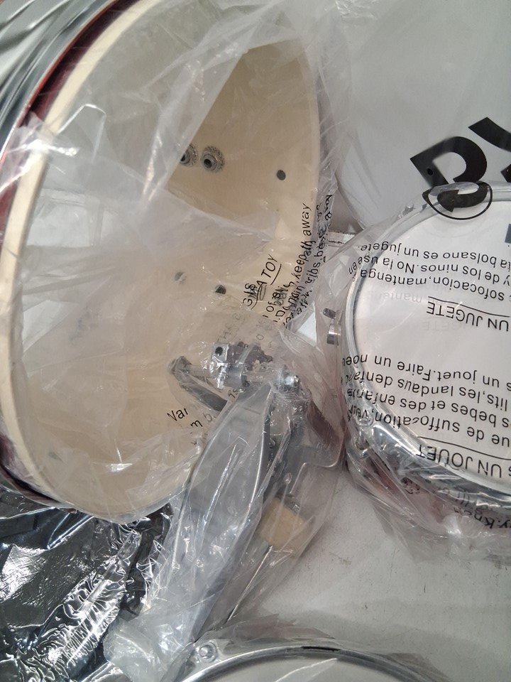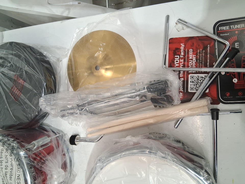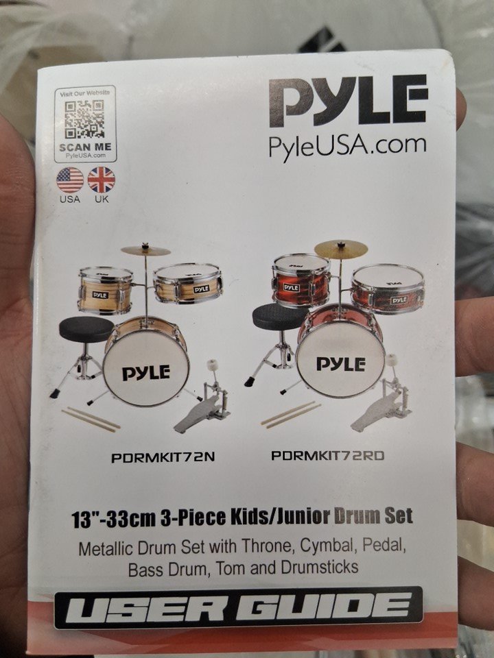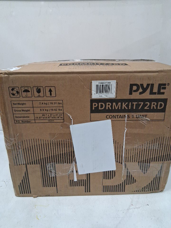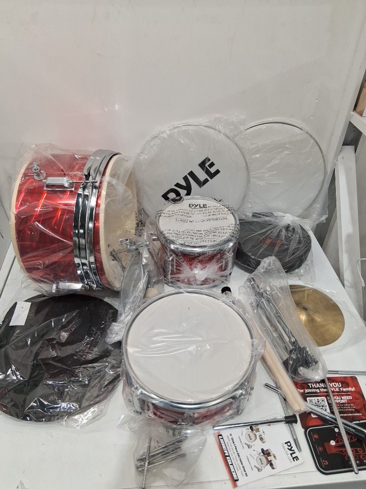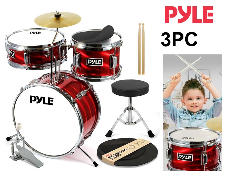 3PC Kids PYLE Drum Set Beginner Kit Metallic Finish with Adjustable Throne – Red (PDRMKIT72RD)