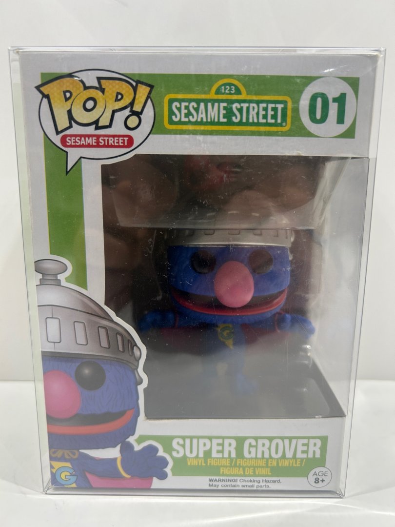 Funko pop! Sesame Street: 123 Sesame Street - super grover vinyl figure (#01) **plastic protector cover**