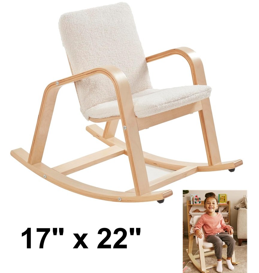 ECR4Kids Bentwood Rocking Chair with Cushion Kids wood Furniture - 17" x 22" - natural (model: elr - 2221 - nt)