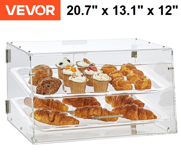 Vevor Pastry Display Case - 2-Tier 20.7" x 13.1" x 12" - Clear (Model: CX-01)