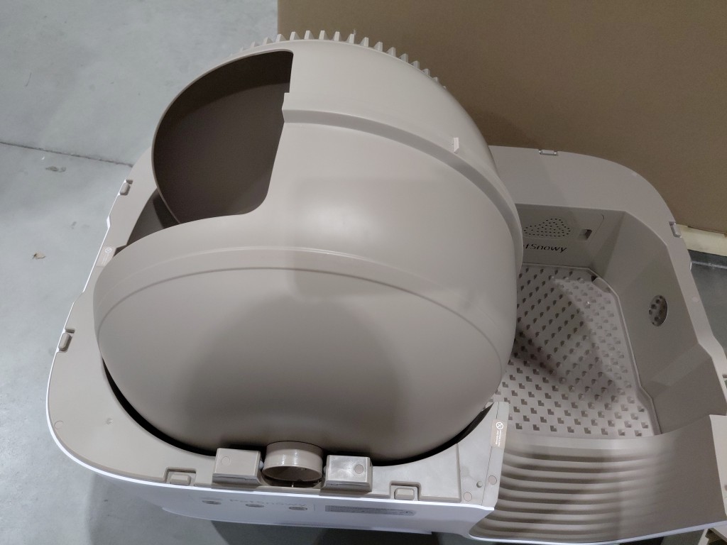 Item only rotates clock wise, is suppose to rotate both ways. Item will need to be troubleshot or repaired. Item has faint hints of litter from test, unused otherwise. Sensor indicate cat inside when no cat is inside may need to clean/troubleshoot. Item was factory reset but issue still consists. Can contact company for troubleshooting.