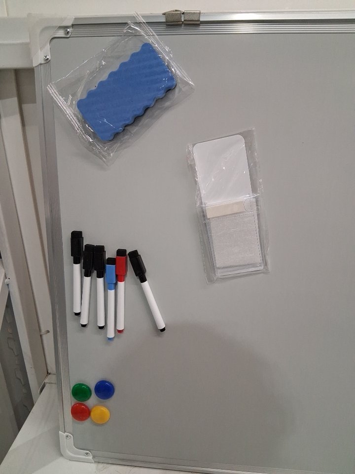 Welmors Office Magnetic White Board With Magnets and 6 Markers - 24" x 36" - White/Silver