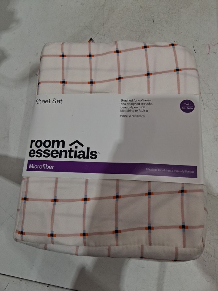 3pc room essentials Microfiber Sheet Set - TWIN/ EXTRA LARGE TWIN - Khaki Gingham
