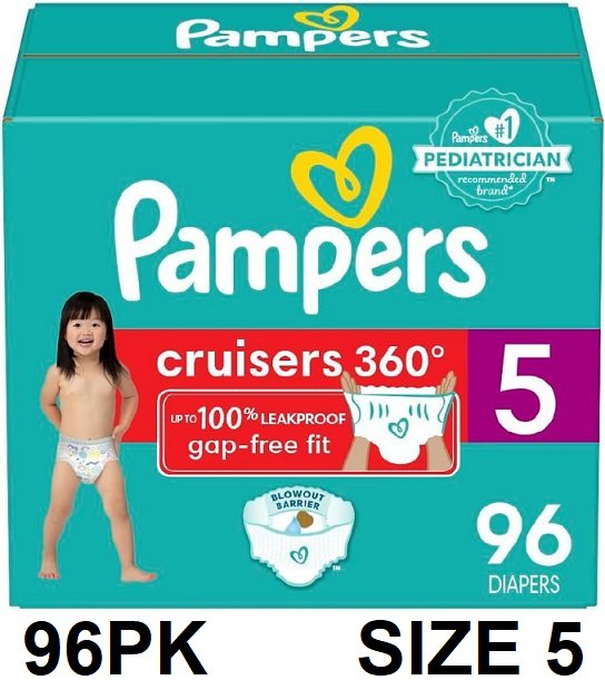 96PK PAMPERS PULL ON CRUISERS 360° GAP-FREE FIT DISPOSABLE BABY DIAPERS - SIZE 5 (27LBS+)